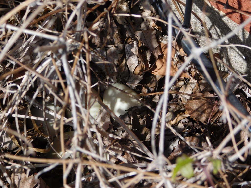 Sure enough, she picked us! I have made sure not to approach the nest too close and took a picture from afar and was able to see about five eggs so far. I have read that they can lay anywhere up to thirteen eggs, so she is probably still not done laying and the fact that she leaves the nest for prolonged periods of time each day tell me that she has not started fully nesting yet. At that point, she will sit on the eggs for most of the day and only briefly leave to forage for food at the nearby river and field behind our back yard.