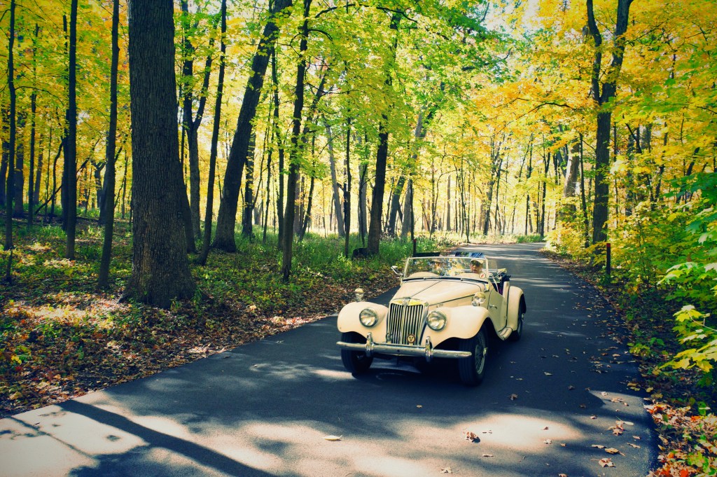 So, as I decide on the composition and line up my shot, patiently waiting for the cars to pass by and the ever-present Instagram-obsessed, selfie stick-wielding couples finally walked out of the scene, I started quickly fiddling with my camera settings. And, as my eyes darted back towards the scene, this historic artifact appeared, lazily rolling down the road towards me. Rooftop down, and an elderly couple of guys waved at me and gave me a smile. This was one of those once in a lifetime situations. Perfect season, perfect light, perfect colors, and all adorned with a creamy off-white-colored masterpiece of a vehicle, gorgeously restored and in pristine condition. I’m no expert in this field, but I think it may be a British MG, the “Midget”, manufactured some time in the 1950s. Beautiful car.